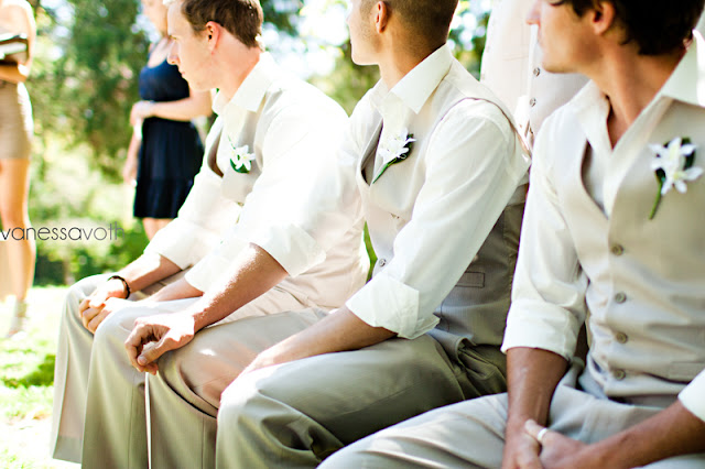 Overall the style of this wedding was everything that I love in a wedding! Her dress was to die for. The designer, Anna Campbell, has the most amazing wedding gowns I've ever seen! The colour and style of the suits were perfect. Dan's hat, too cute. The girls' dresses, brilliant! Everything about it was gorgeous.